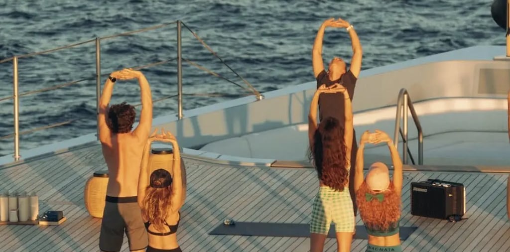 From practicing yoga on the helideck to working out in the onboard gym to eating caviar for breakfast, Google co-founder Sergey Brin’s glamorous girlfriend shows what balanced living looks like aboard the $450 million Dragonfly, the largest superyacht in America